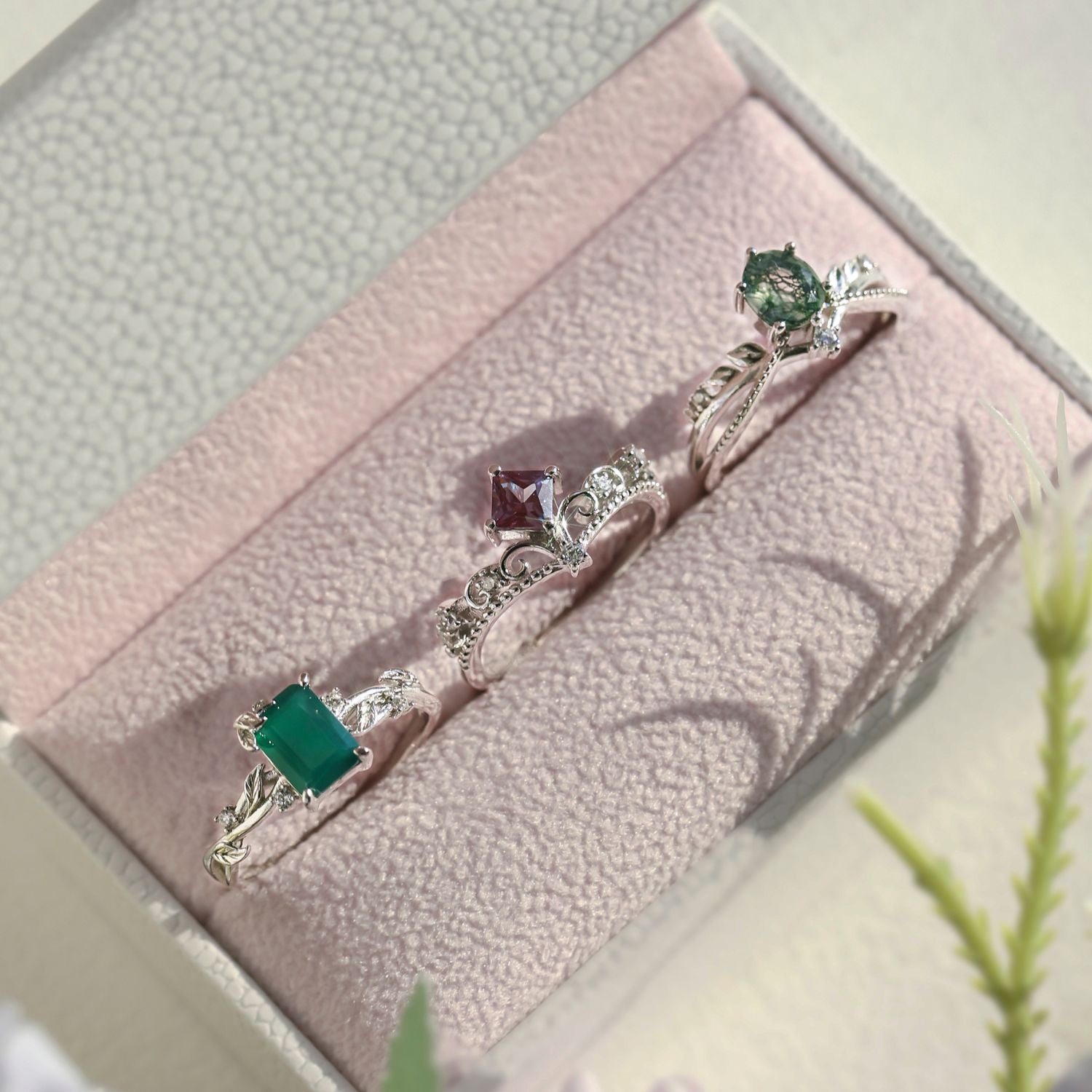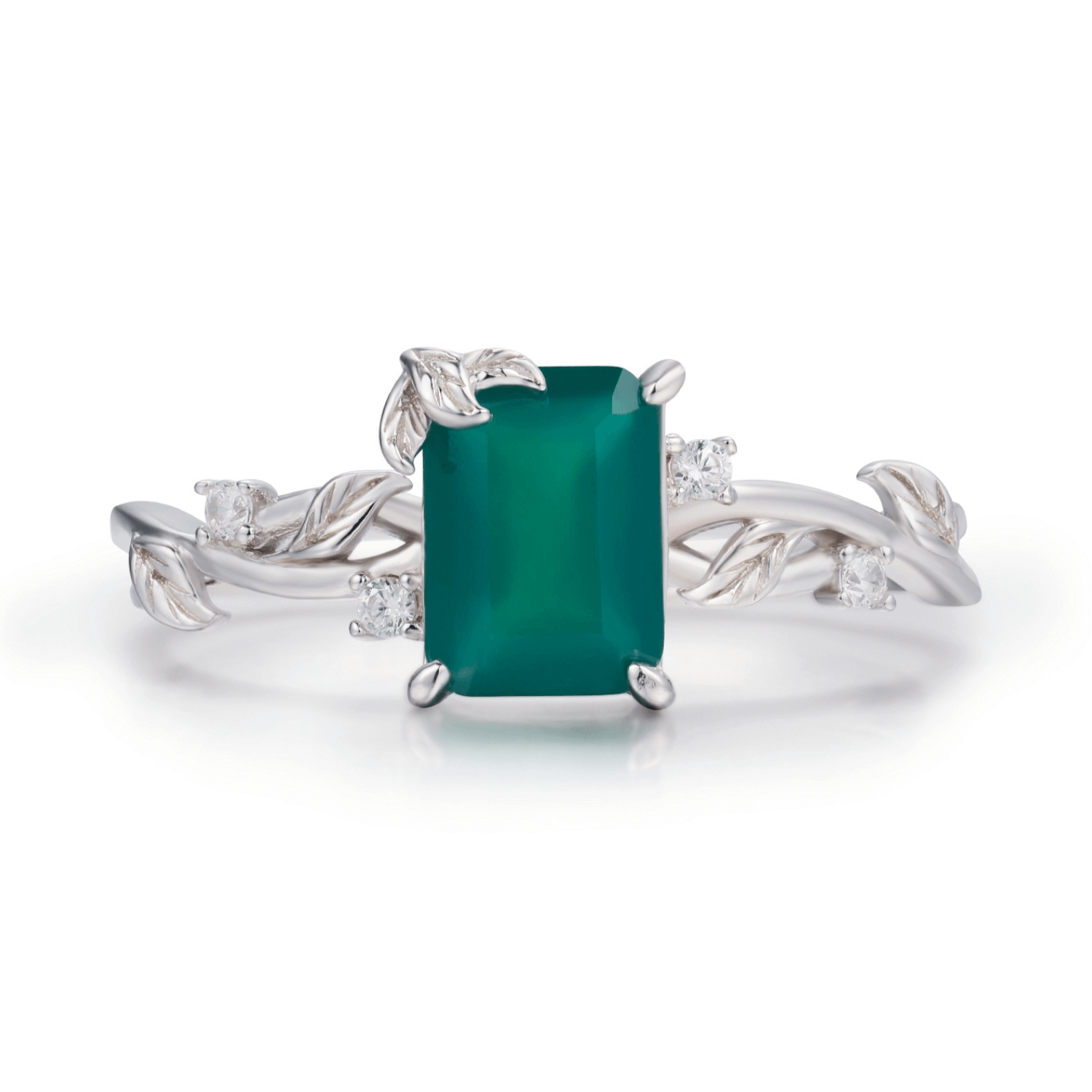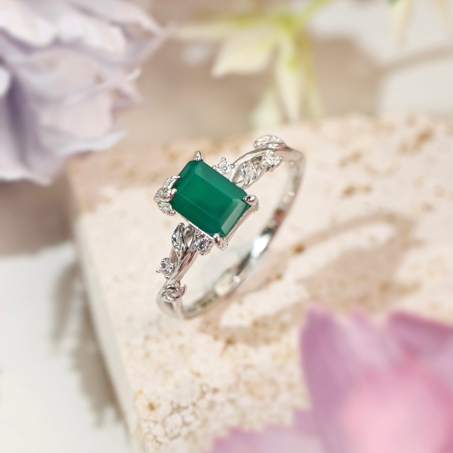 ✦ 8x6mm natural emerald-cut green onyx (center stone)