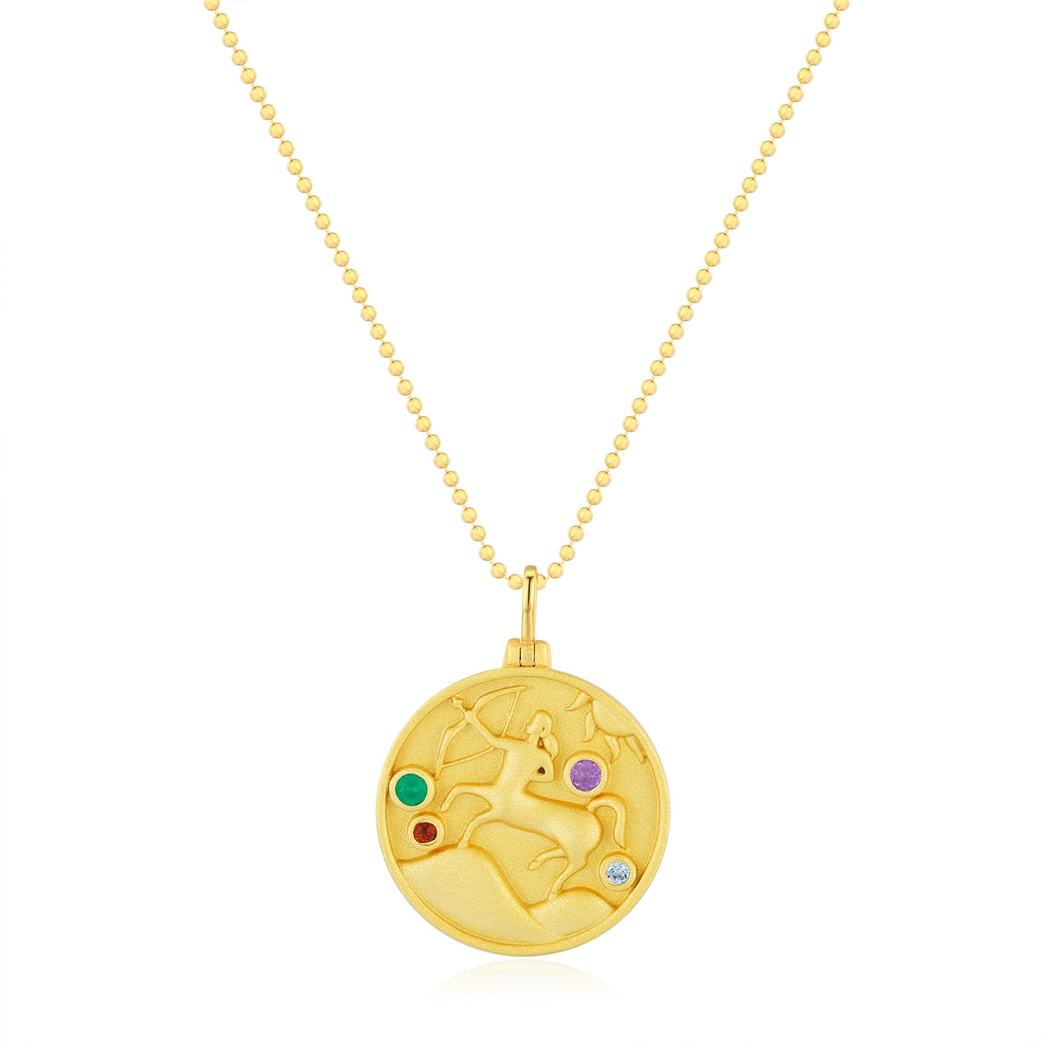 The Sagittarius Zodiac Mantra Necklace is a radiant talisman that honors Sagittarius’ divine role as the Archer of Endless Possibility.