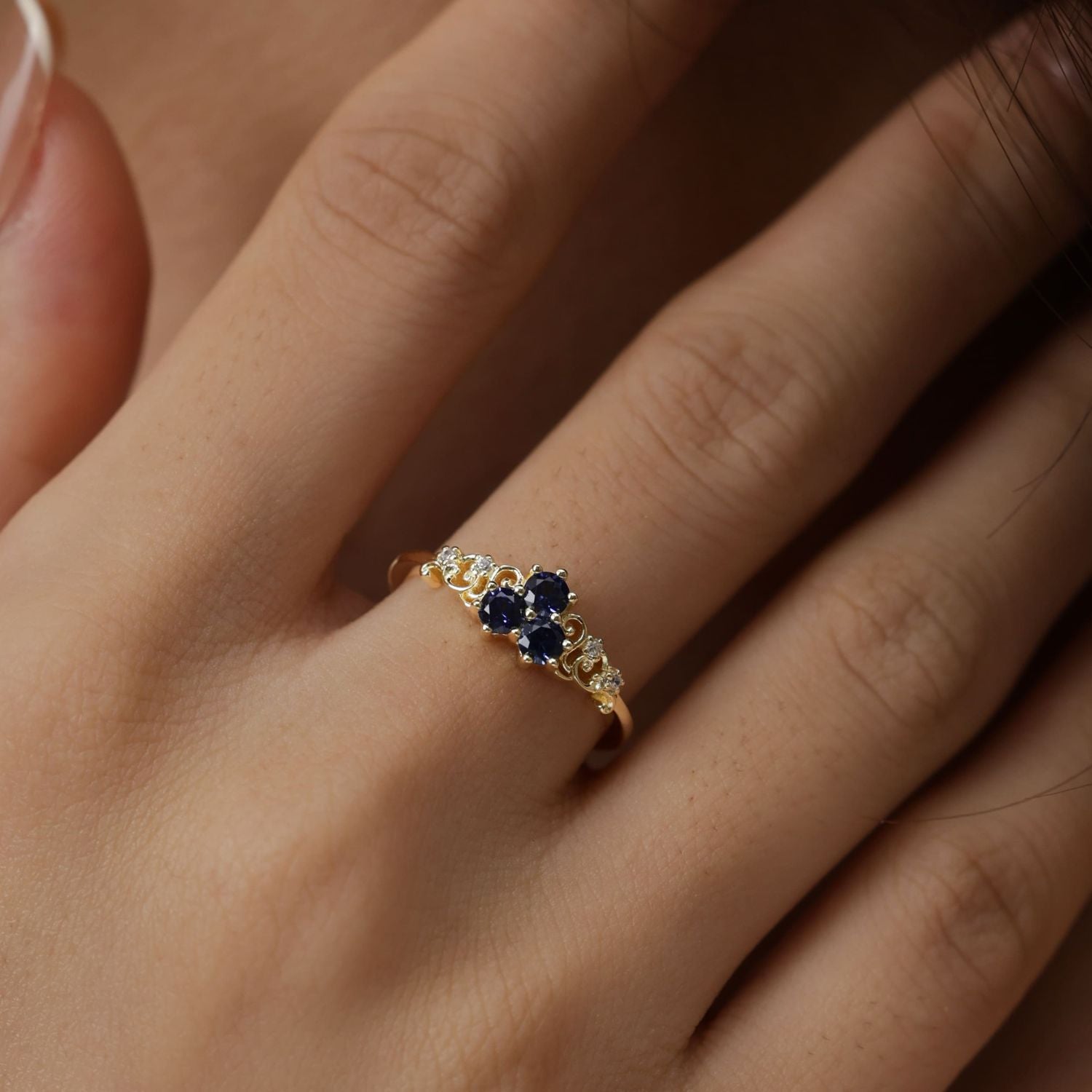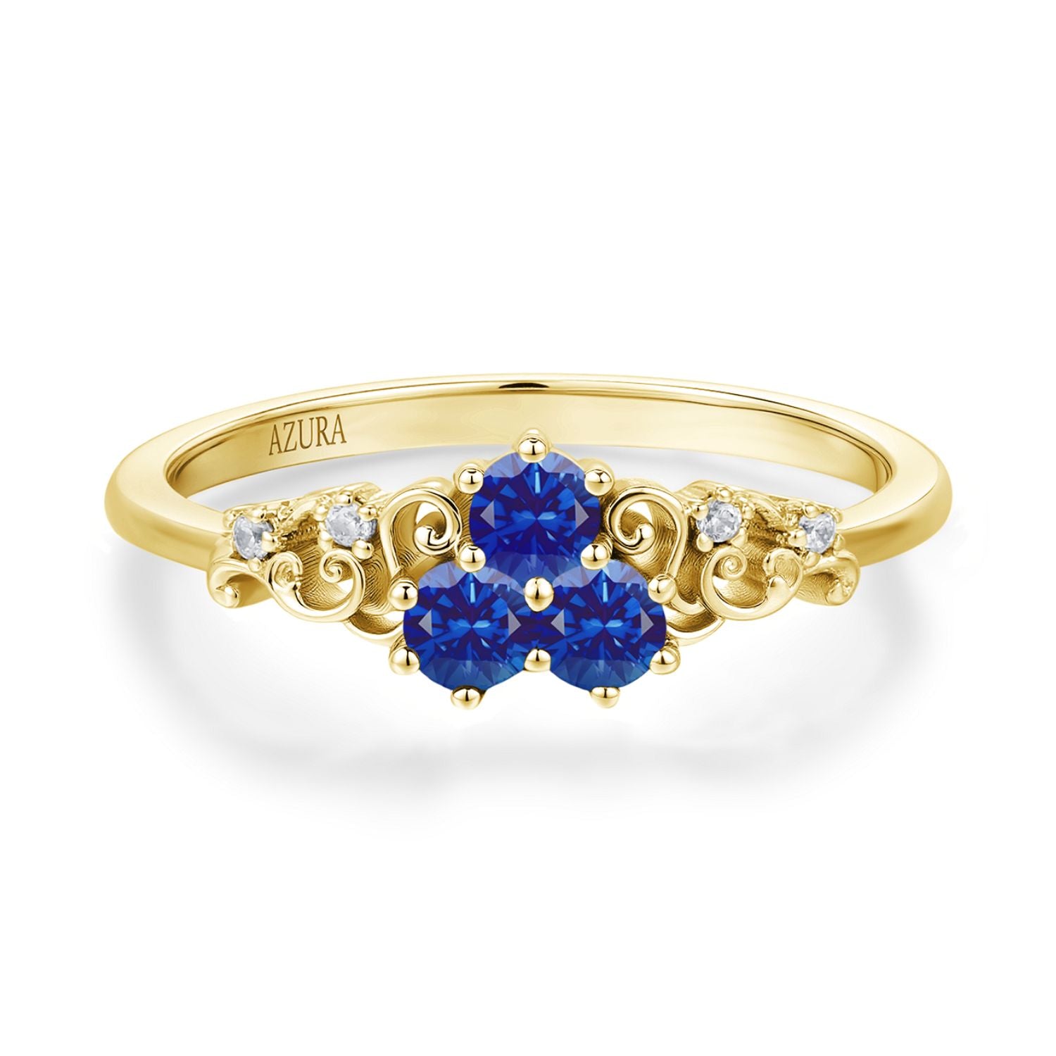 ✦ Center Stone: 3x3mm round lab-grown Royal Blue Sapphire