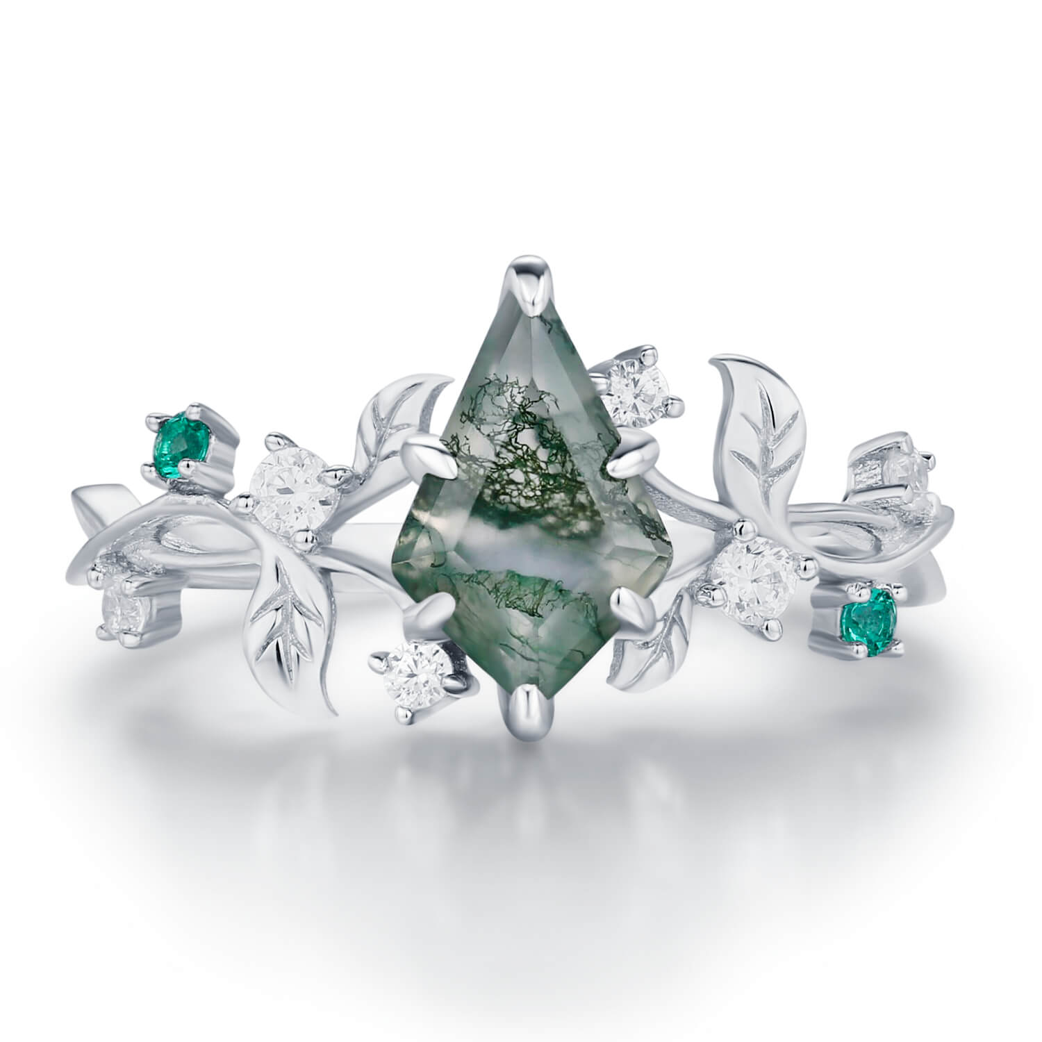 ✦ Center Stone: 6x9mm kite-shaped Moss Agate