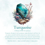 Turquoise, known for its protective properties, is a talisman of strength and safety, shielding the wearer from negative energies and harm. It embodies self-acceptance, encouraging individuals to embrace their true selves and find inner peace. This unique gemstone also harmonizes the mind and spirit, fostering equilibrium and clarity.
