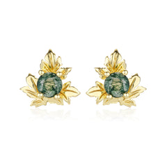 Silver Leaf Moss Agate Necklace (Yellow Gold)