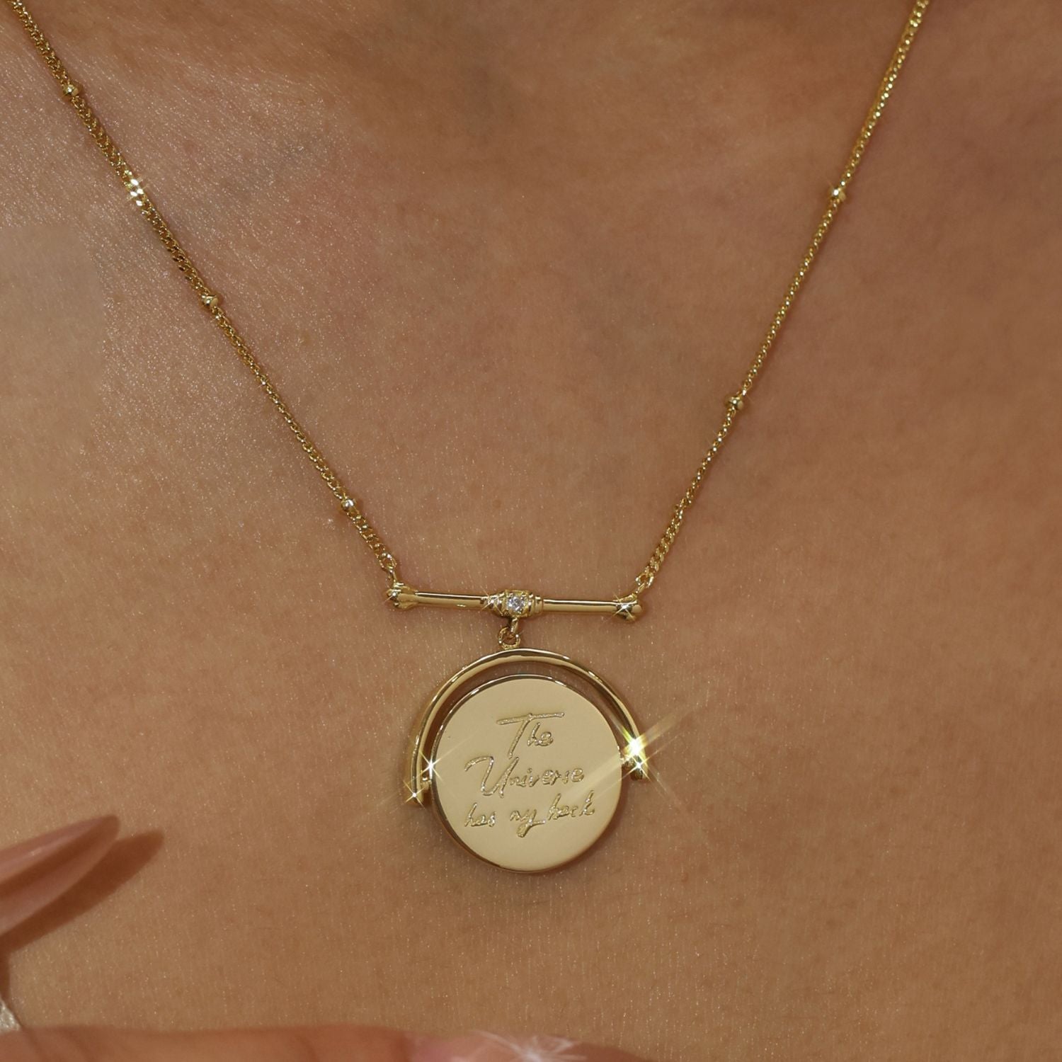 On the reverse side, a hidden engraving reveals a powerful affirmation: