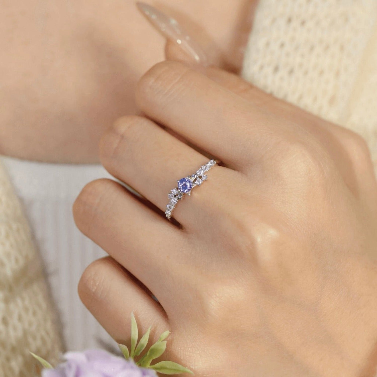 ✦ 3mm natural round-cut tanzanite center stone)