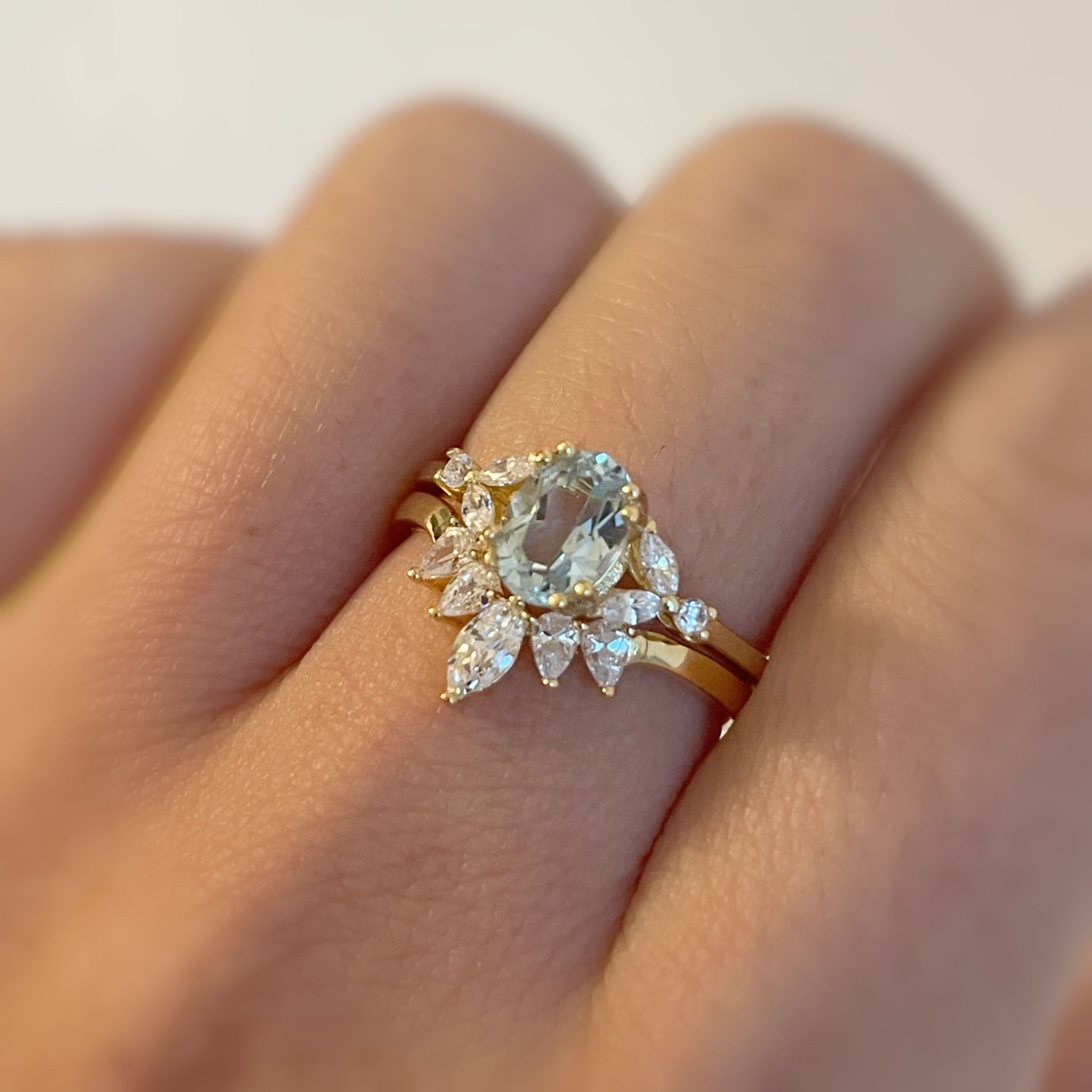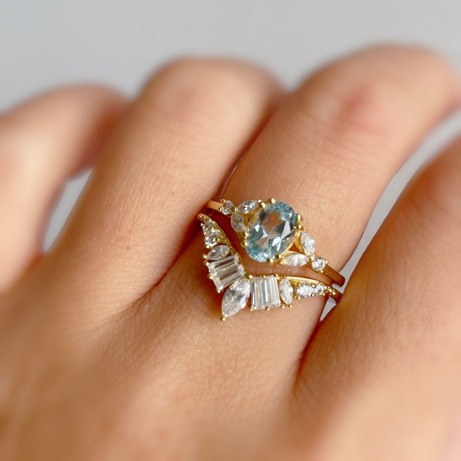 ✦ 5x7mm natural oval-cut aquamarine (center stone)