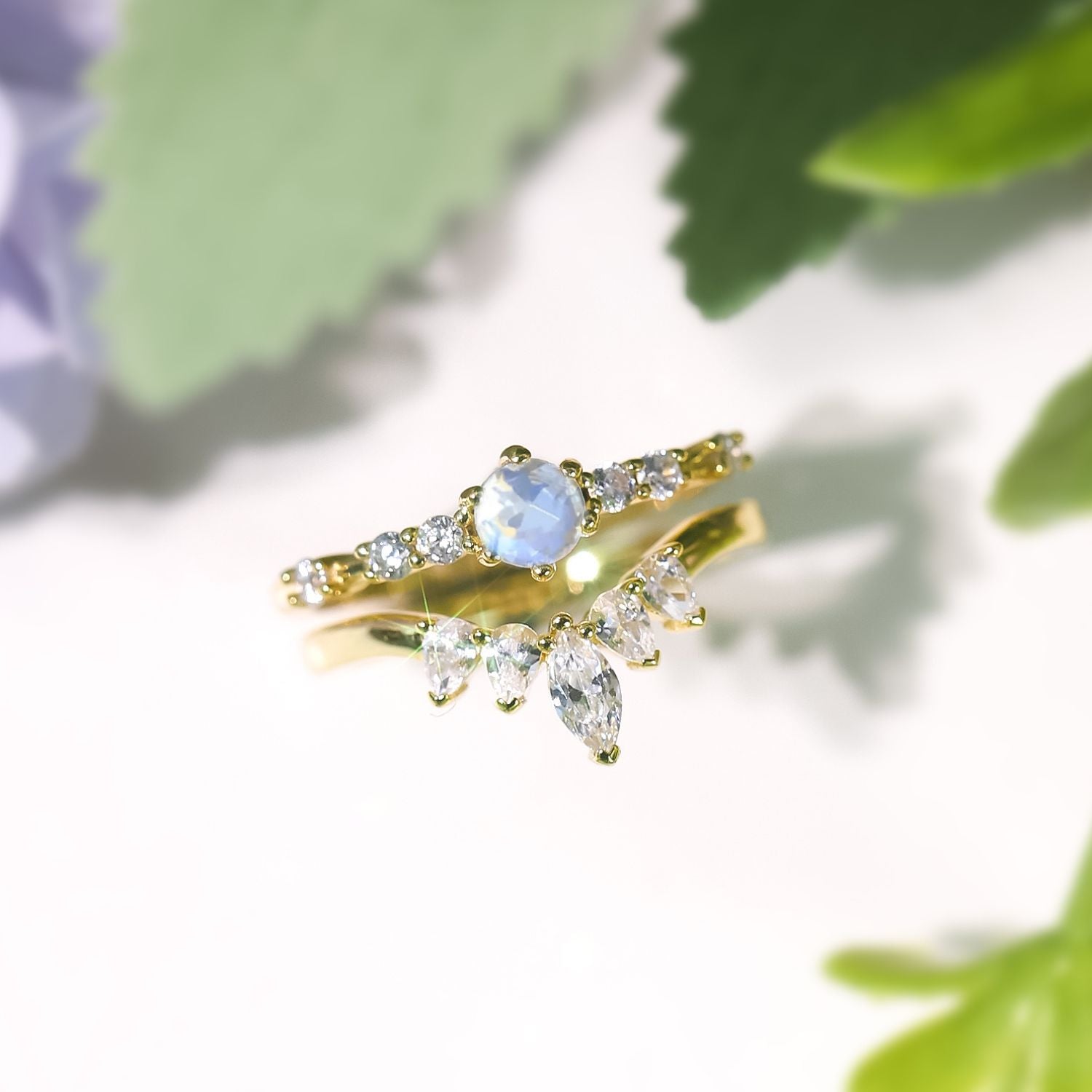 This is one of four Azura rings I bought within a month of discovering this brand. I may have a problem… It’s hard to show in the picture, but combined with the Clarity moonstone ring, this stack is a sparkle bomb! I especially love how they shine at night, in mood lighting. Also, thank you Azura for offering these rings in size 9.