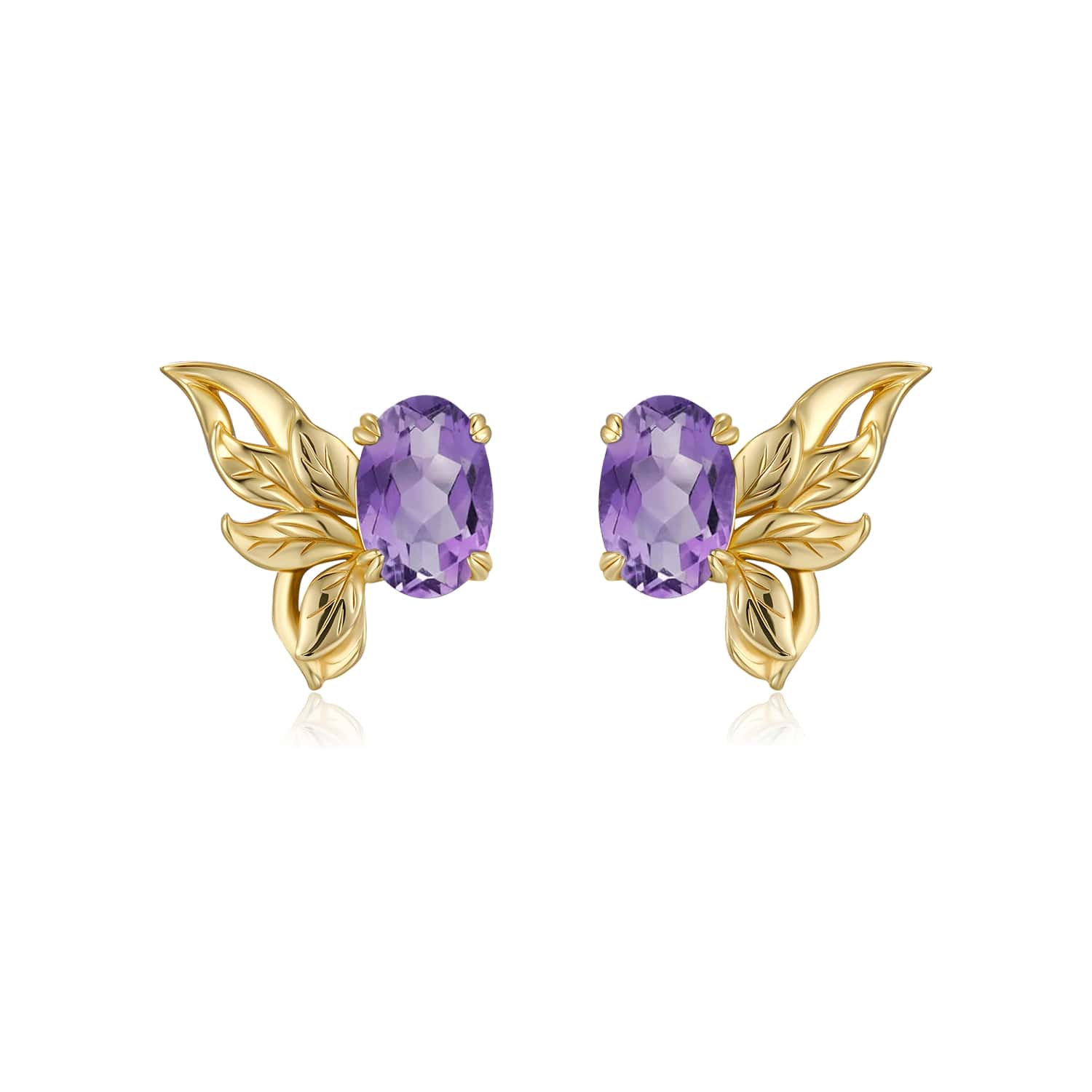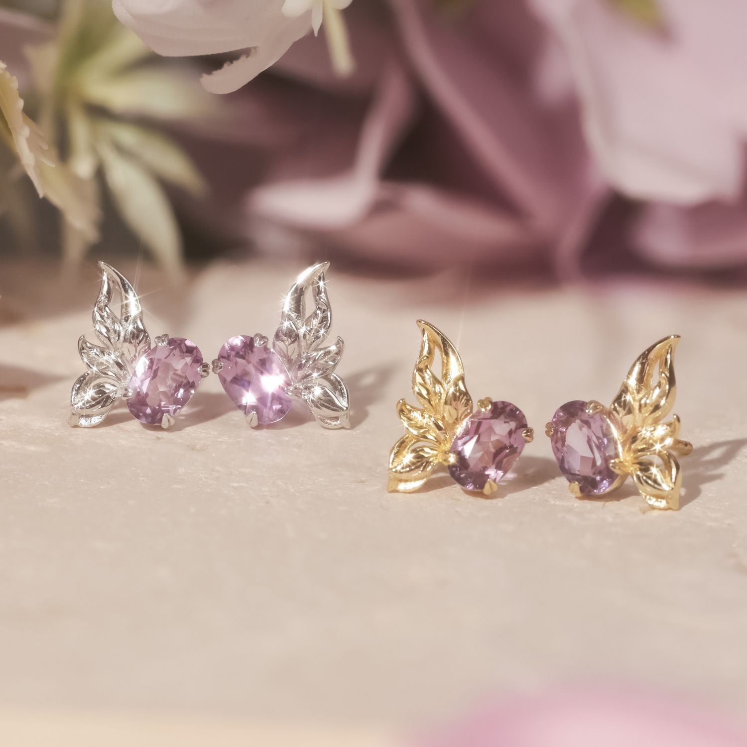 Step into a realm of enchantment with this handcrafted pair of fairy-inspired earrings, featuring radiant oval amethyst gemstones and intricately carved leaf motifs that evoke delicate fairy wings and forest magic—crafted in 14k gold vermeil over sterling silver. Designed for dreamers, wanderers, and lovers of fae magic, these nature-inspired stud earrings blend elegance with deep meaning.