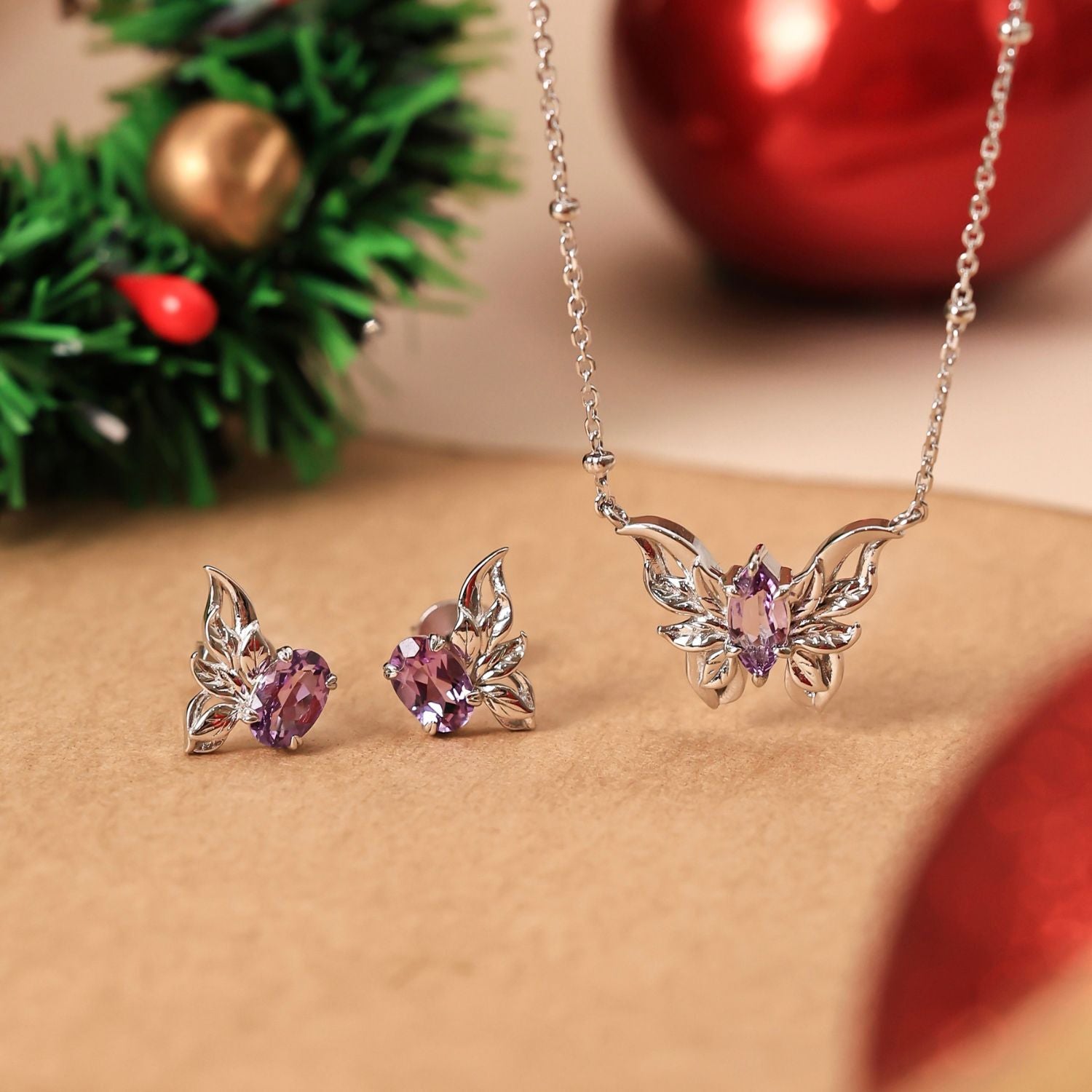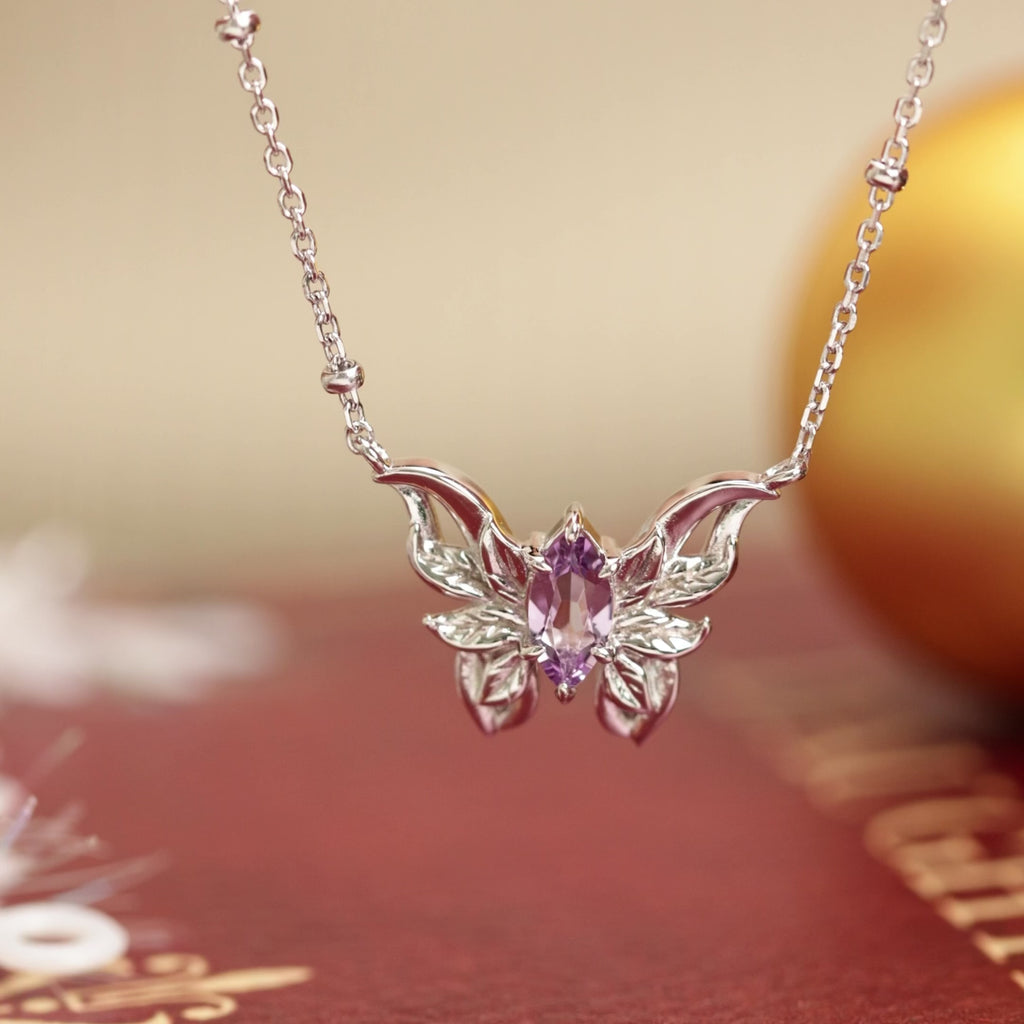 With delicate, wing-like design and vibrant violet stones, it is believed to hold a whisper of faerie magic—blessing the wearer with clarity of thought, protection on their journey, and a gentle reminder to move through life with lightness and grace.