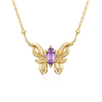 With delicate, wing-like design and vibrant violet stones, it is believed to hold a whisper of faerie magic—blessing the wearer with clarity of thought, protection on their journey, and a gentle reminder to move through life with lightness and grace.