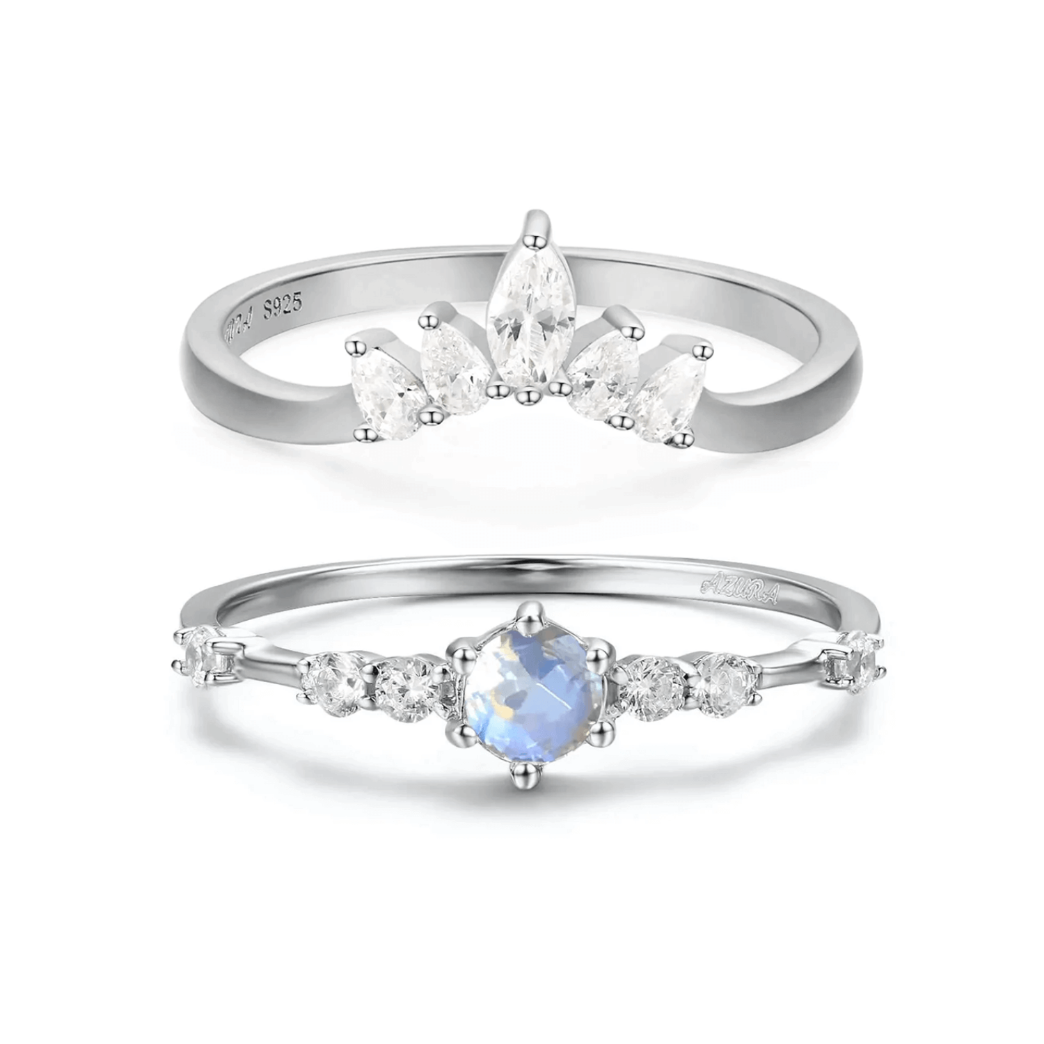 The Center of the Universe Moonstone Ring & Supreme White Topaz Ring Set
