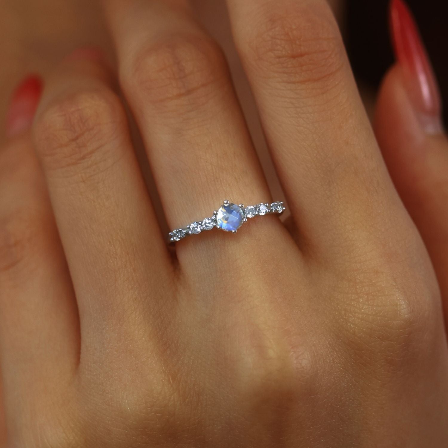 ✦ 4mm natural round-cut moonstone (main ring center stone)