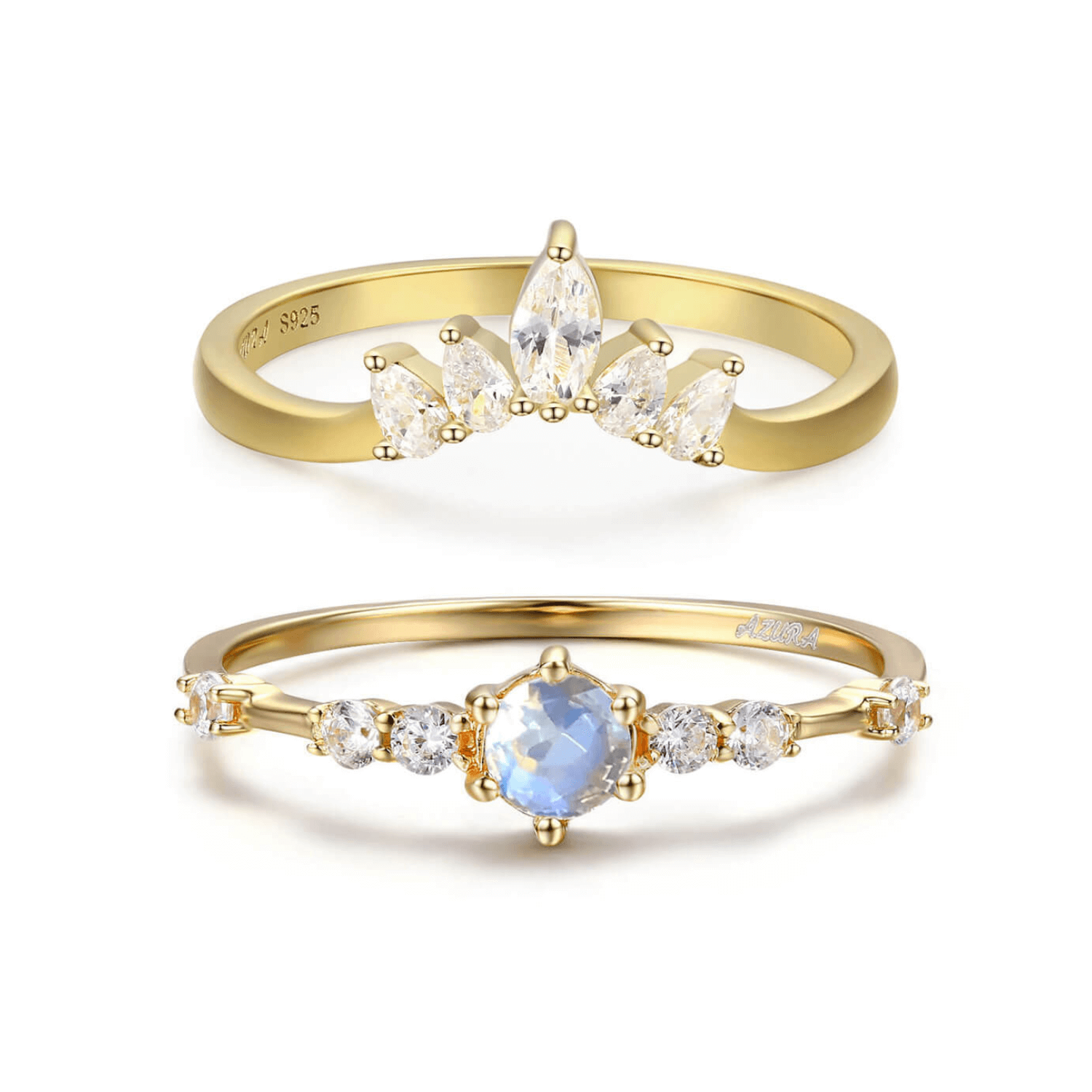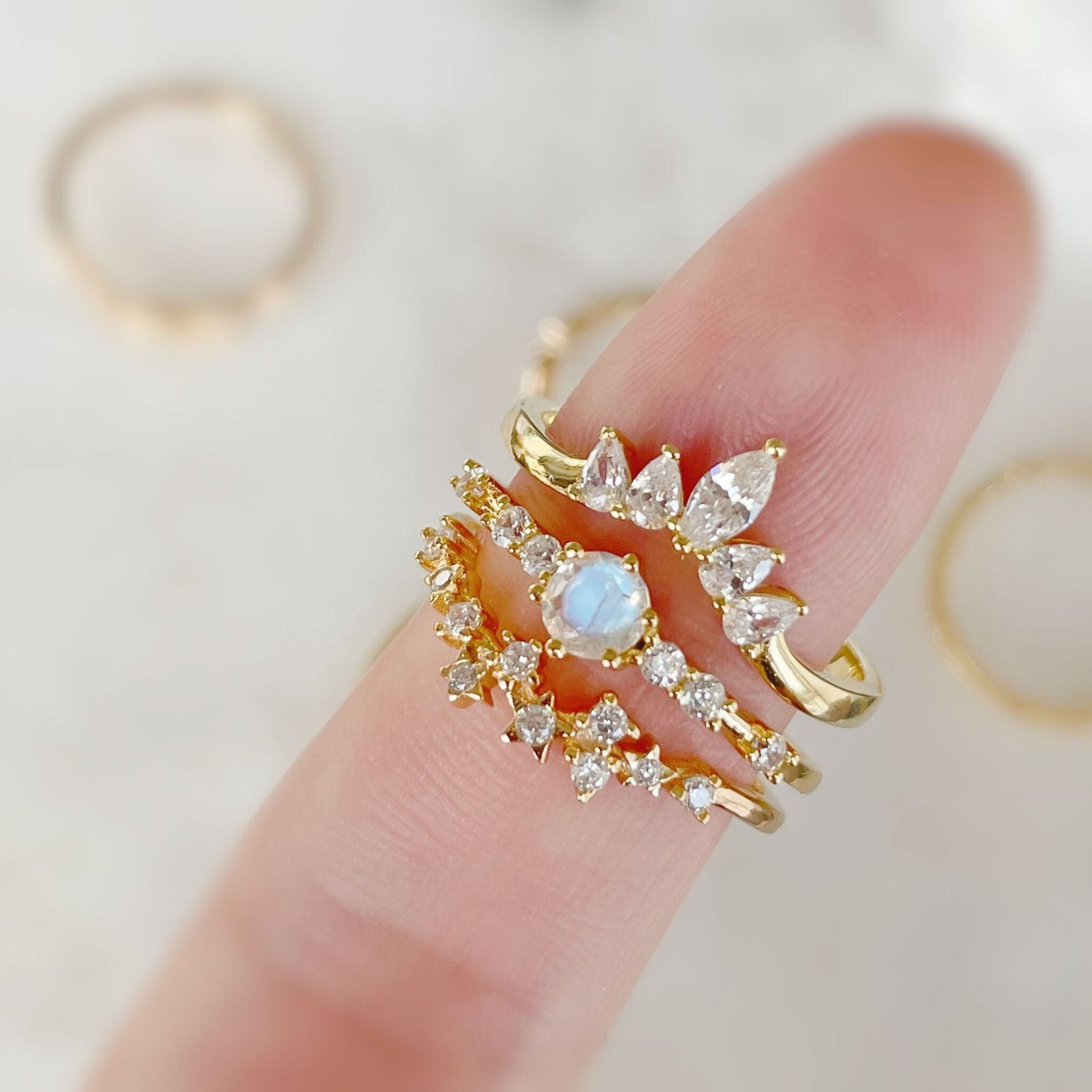 Ideal as an alternative engagement ring set, a heartfelt anniversary present, or for lovers of celestial-inspired jewelry with ethereal charm.