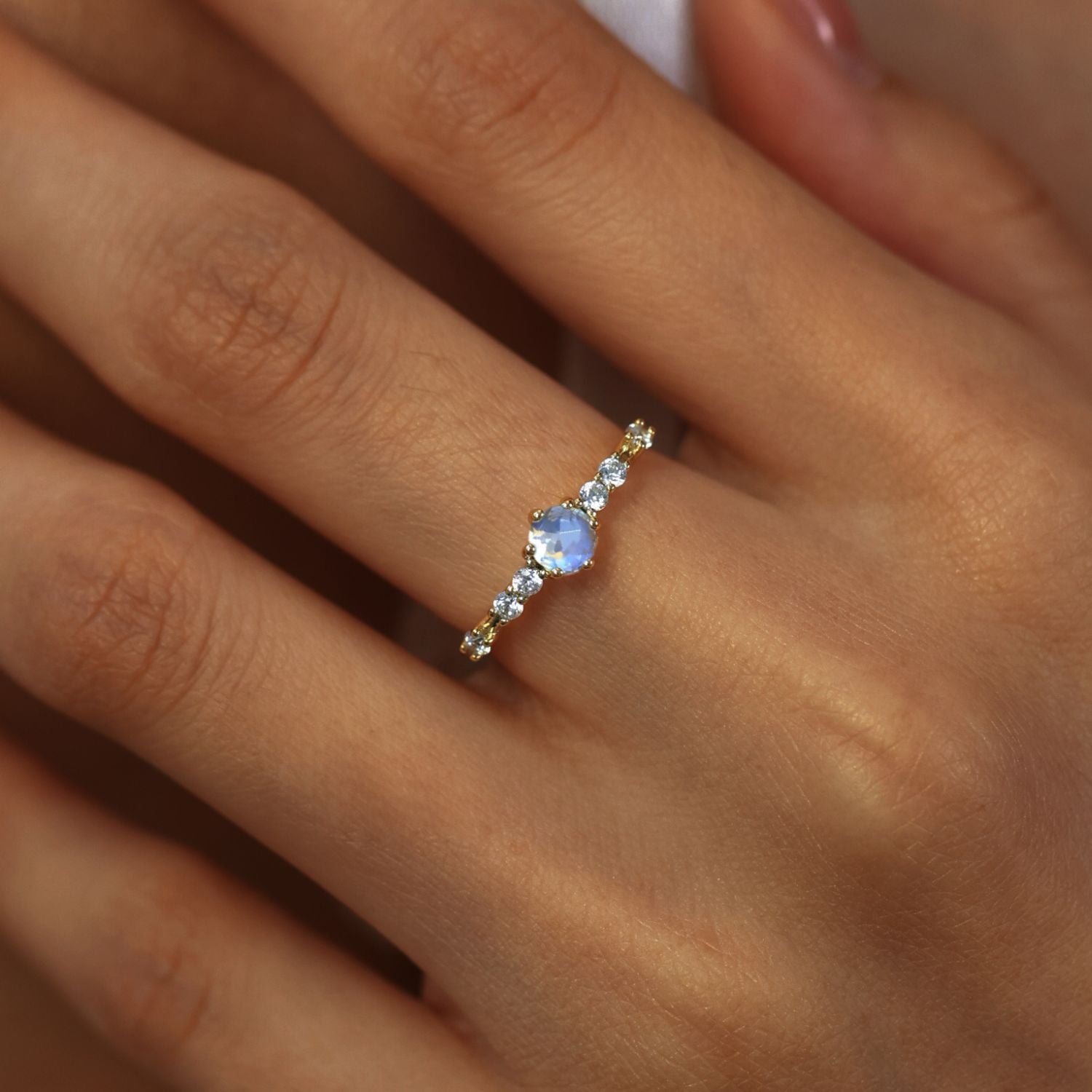 ✦ 4mm natural round-cut moonstone (main ring center stone)