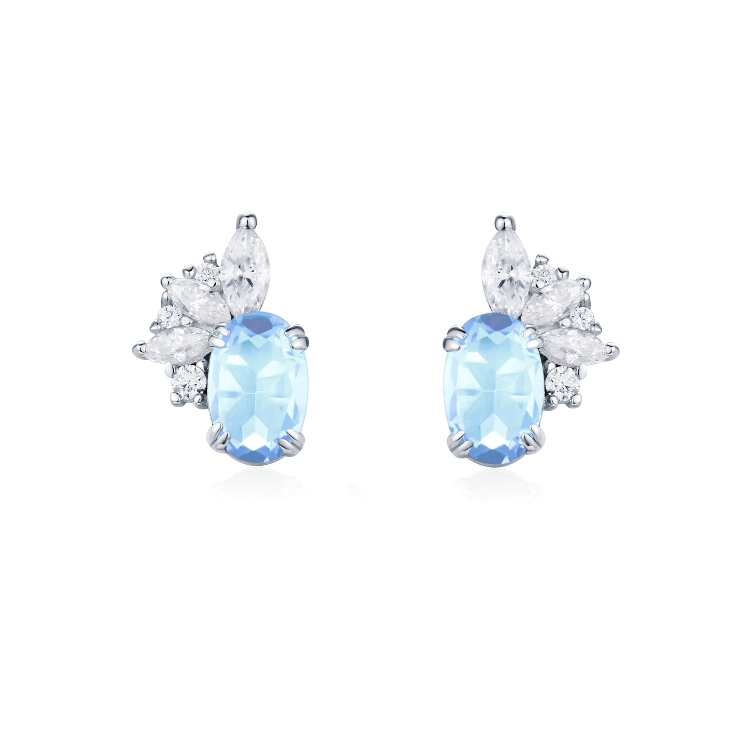 These celestial-inspired stud earrings showcase a stunning oval sky blue topaz reflecting the serene hues of the evening sky. Radiating a peaceful glow, this captivating gemstone symbolizes hope, courage, and guidance through life’s darkest moments.