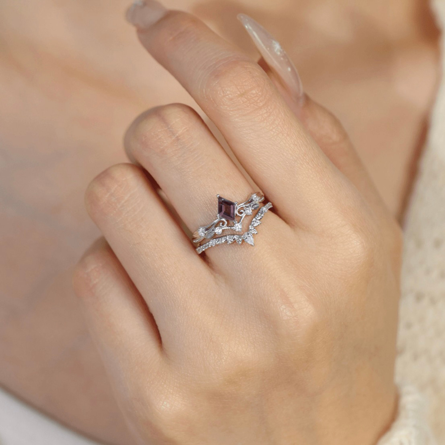 ✦ Center Stone: 5x7mm rhombus lab-grown Alexandrite