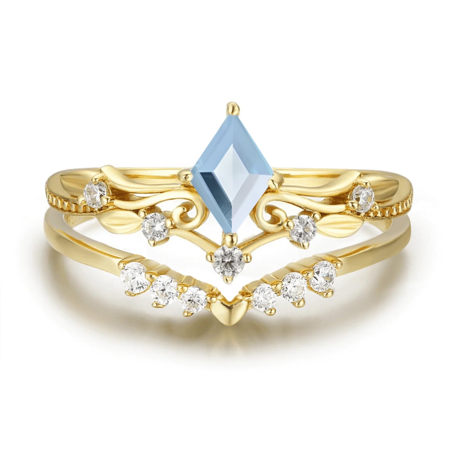 ✦ 5x7mm natural rhombus-cut sky blue topaz (main ring center stone)