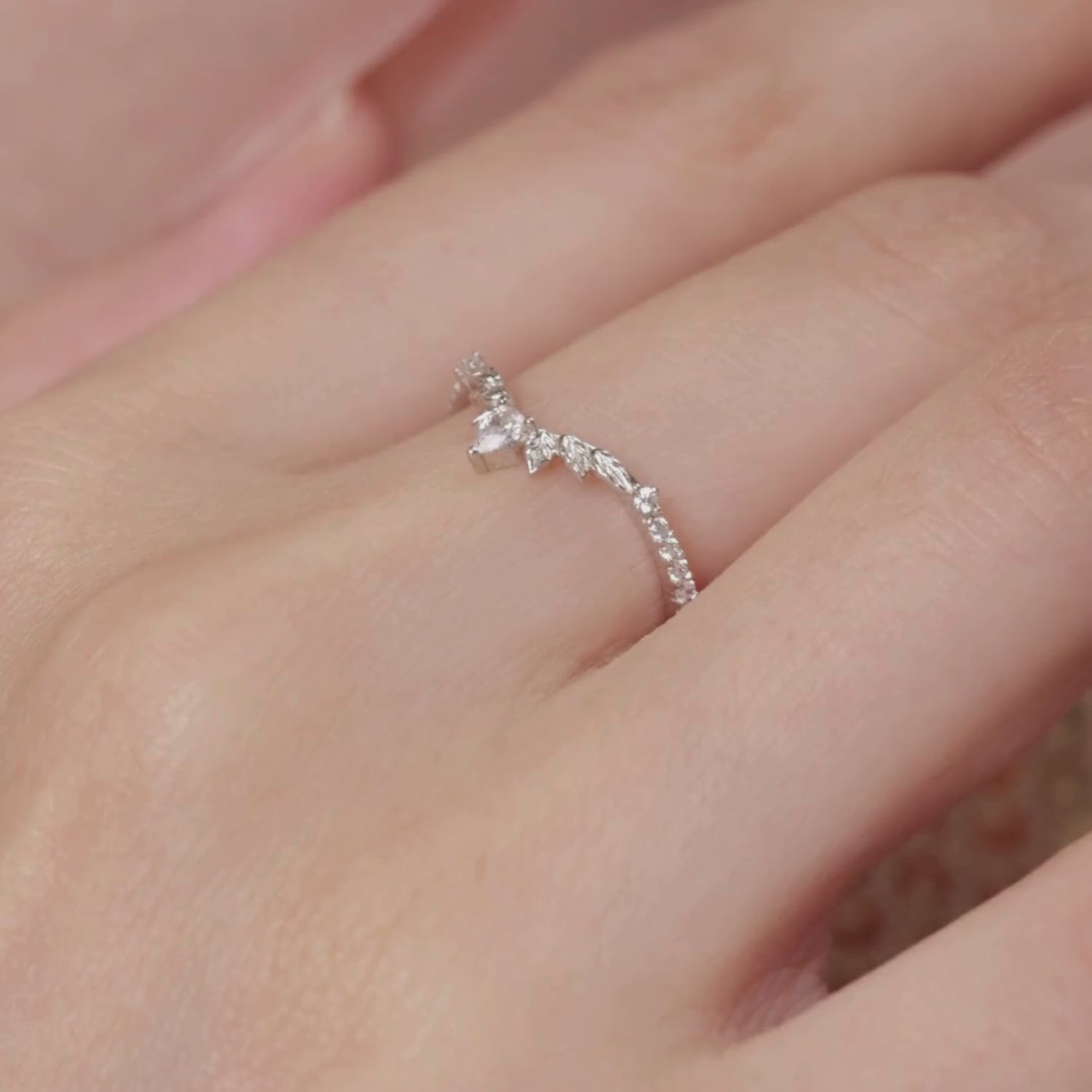 Ideal as a non-traditional engagement ring set, a nature-inspired promise ring set, or a piece of antique-style jewelry, it captures natural elegance infused with a touch of enchantment.