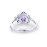 At the heart of the ring lies a stunning pear amethyst gemstone prized for its rich violet color and spiritual healing properties. Known to inspire calmness, courage, and clarity, amethyst makes this ring a powerful emblem of personal growth and transformation.