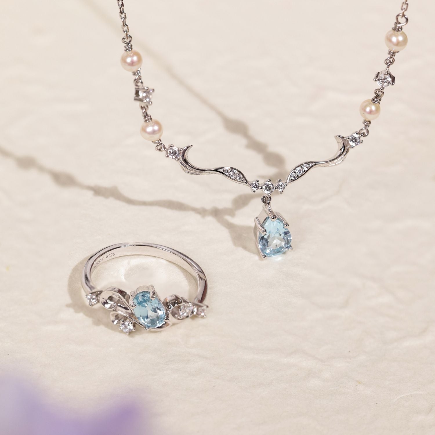 Immerse yourself in the calm power of water-style sword arts with this sky-blue topaz ring. The oval stone rests in a band carved like ukiyo-e waves, tracing the sweep of a blade guided by breath—steady, fluid, unstoppable. Each curve captures the rhythm of water and the quiet strength it lends the wearer. Perfect as an engagement ring for the one who breathes like water, a November-birthstone keepsake, or a meaningful gift for ocean-hearted dreamers.