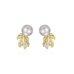 Lustrous freshwater pearls rest gently above sculpted leaf motifs, bathed in 14k gold vermeil (gold plated over sterling silver). A sparkling white topaz accent glistens like a dewdrop at dawn, adding a soft, graceful shimmer to each piece.