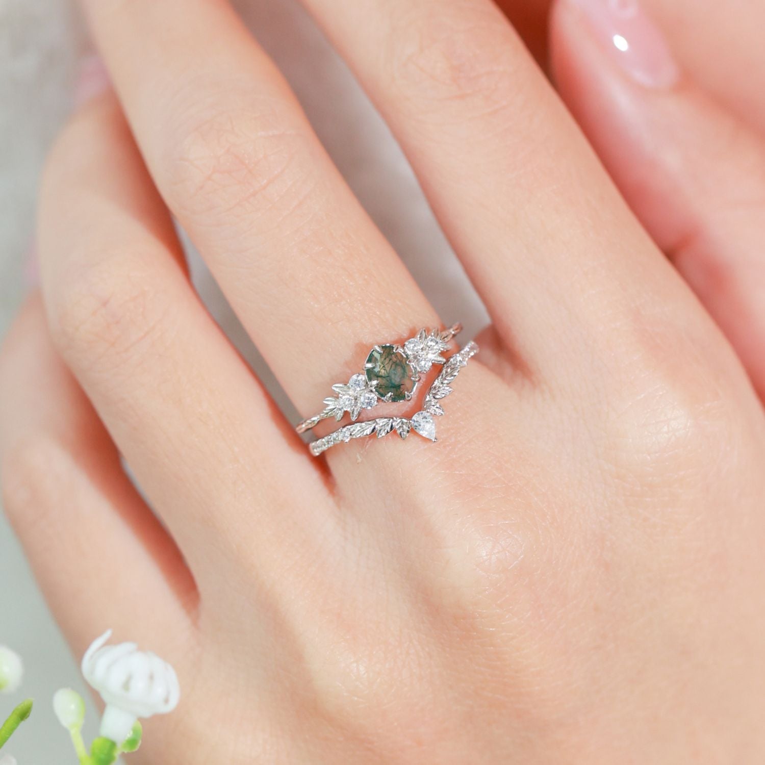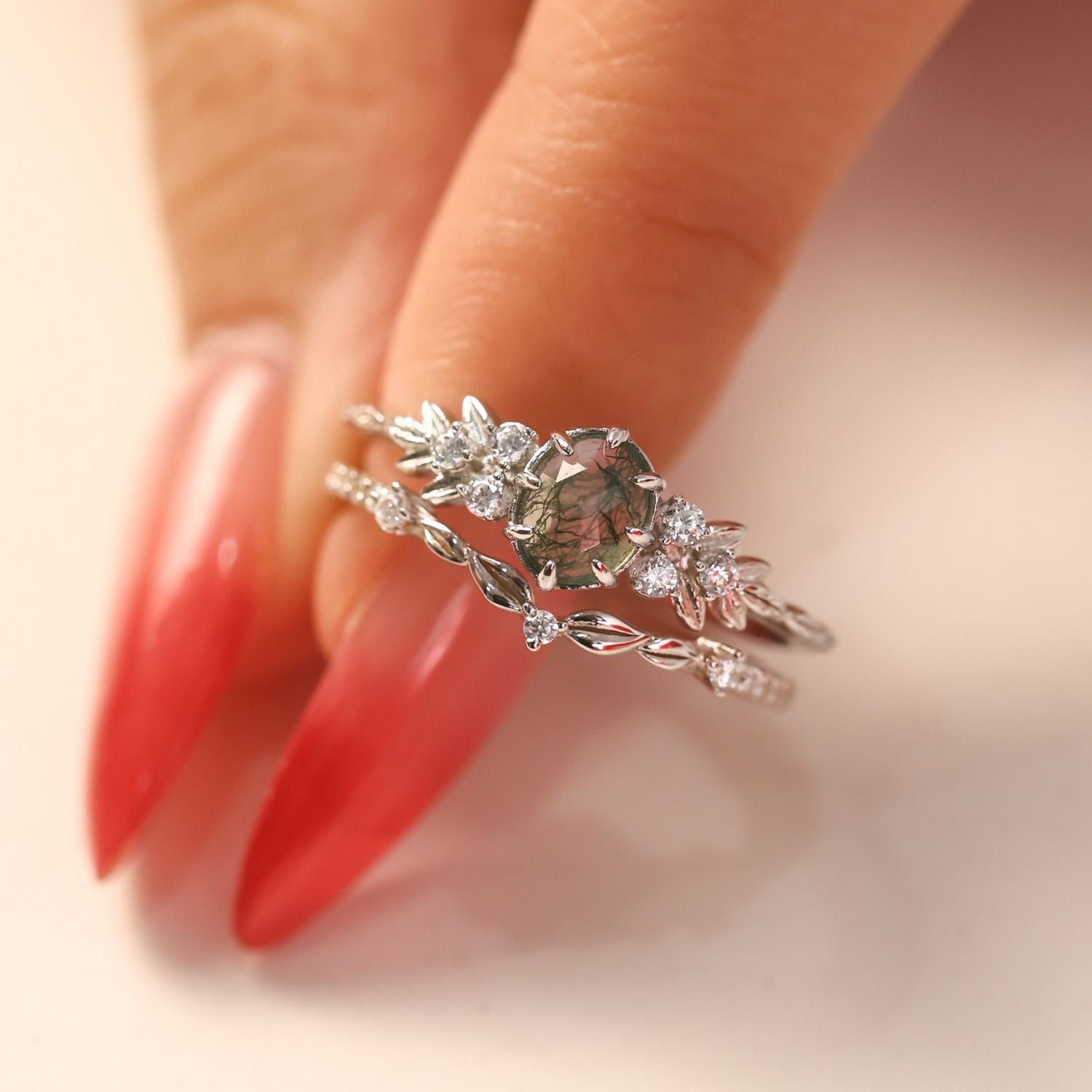 This moss agate ring is ideal as a non-traditional engagement ring, a symbolic promise ring, or a meaningful gift for nature lovers, romantics, and fans of fantasy jewelry.