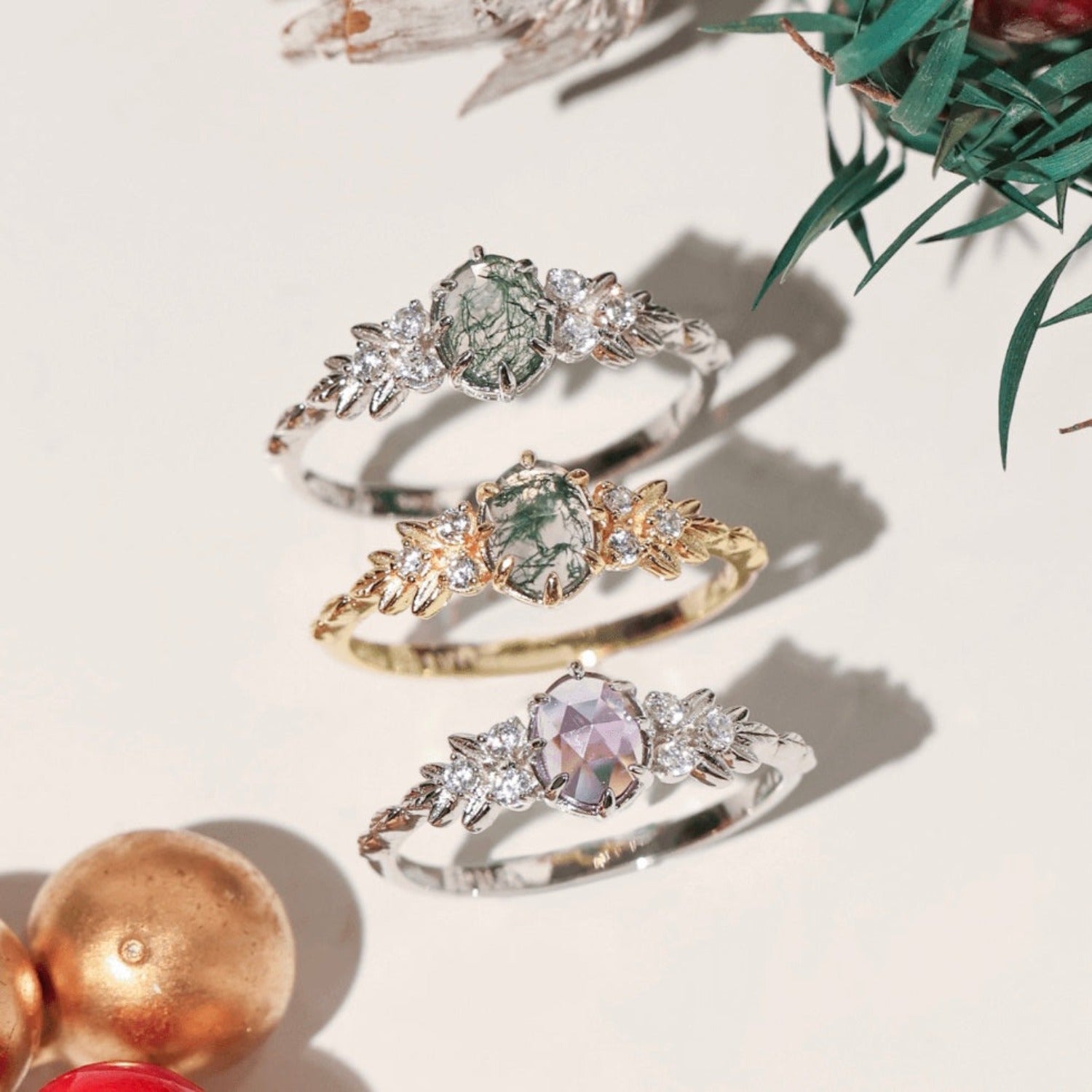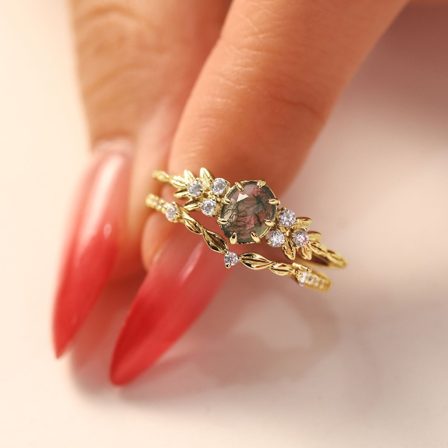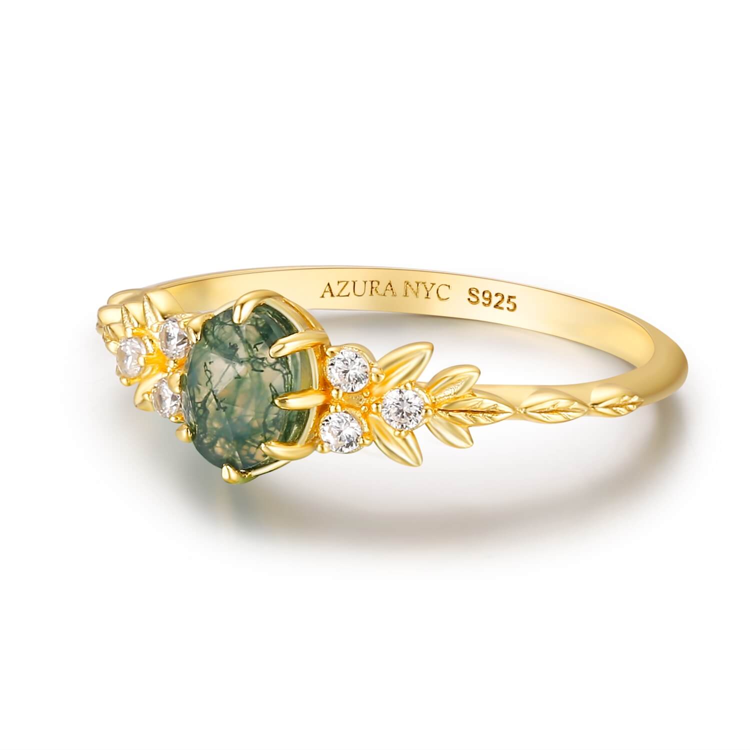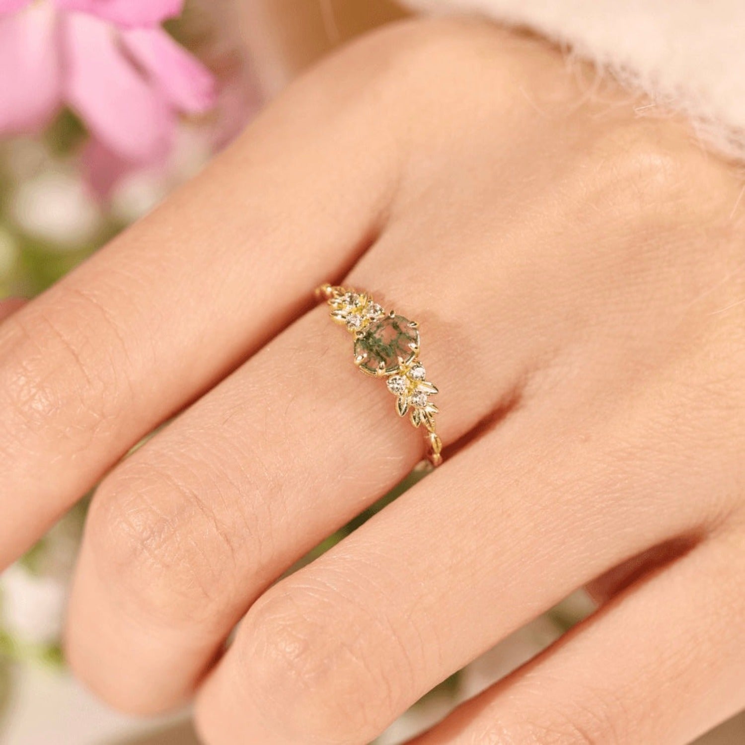 This moss agate ring is ideal as a non-traditional engagement ring, a symbolic promise ring, or a meaningful gift for nature lovers, romantics, and fans of fantasy jewelry.